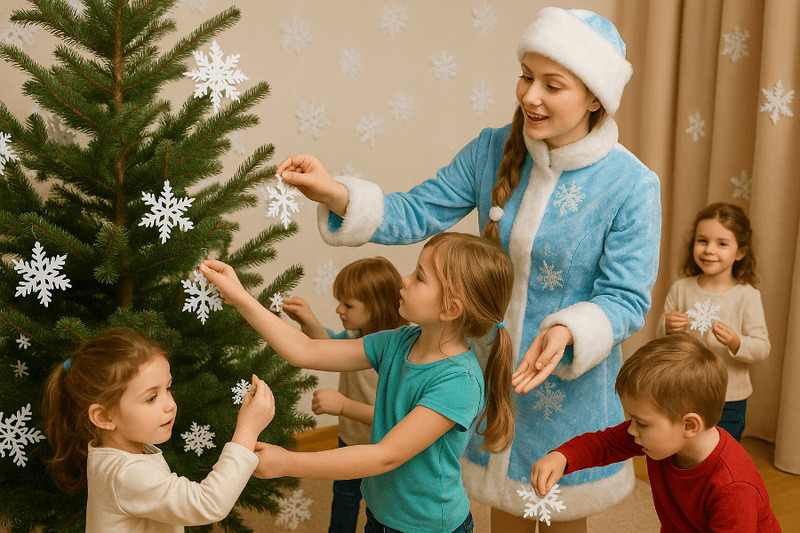 Когда дети закончат, они возвращаются на места, на елке зажигаются огни, и праздник начинается. Источник — ChatGPT-5