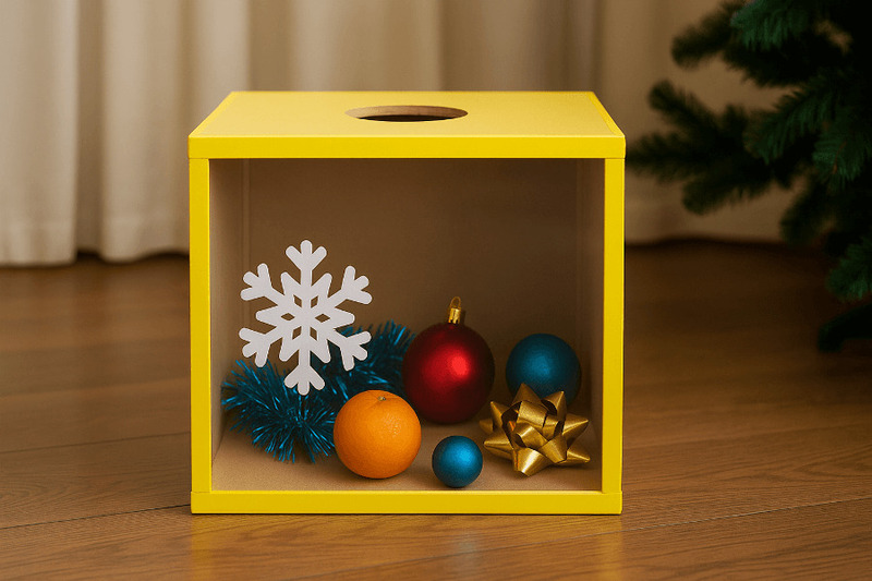 Предметов в коробке должно быть по количеству участников. Не обязательно, чтобы наполнение было новогодним — детям интересен сам момент угадывания. Источник — ChatGPT-5