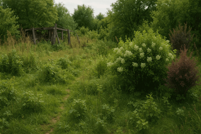 Заросли скрывают ценные растения: стоит присмотреться, прежде чем все убирать. Источник — нейросеть Dall-E