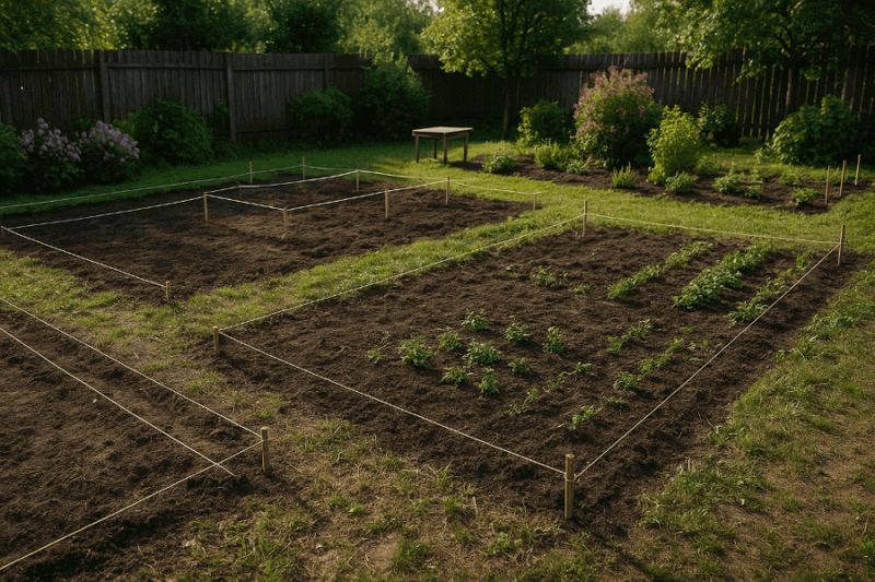 После очистки проверьте рельеф. Если есть ямы или кочки, их лучше выровнять. В низинах можно насыпать грунт, а на бедных почвах — добавить плодородную землю или компост.