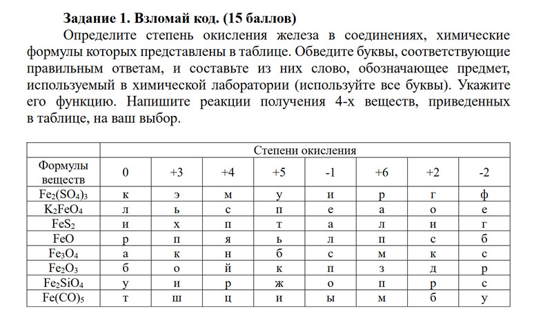 Пример задания заключительного этапа по химии для 8 класса. Источник — СФУ