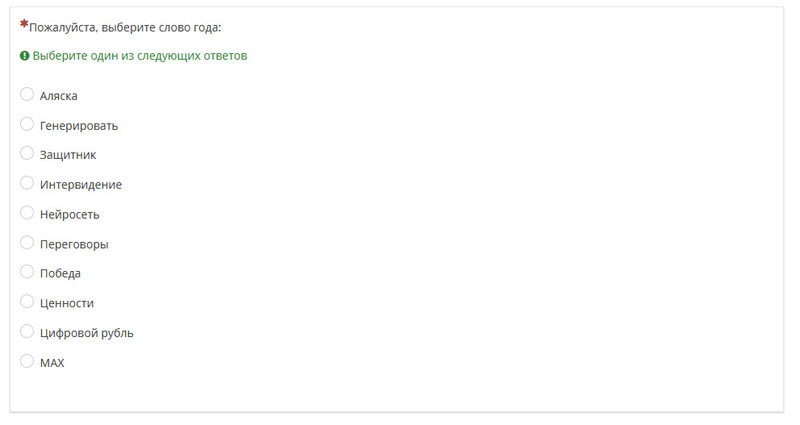 Институт русского языка имени А. С. Пушкина словом года назвал слово «победа». Сначала эксперты проанализировали, какие слова чаще всего появлялись в медиа и поисковых запросах, затем составили список кандидатов и вынесли его на открытое голосование.