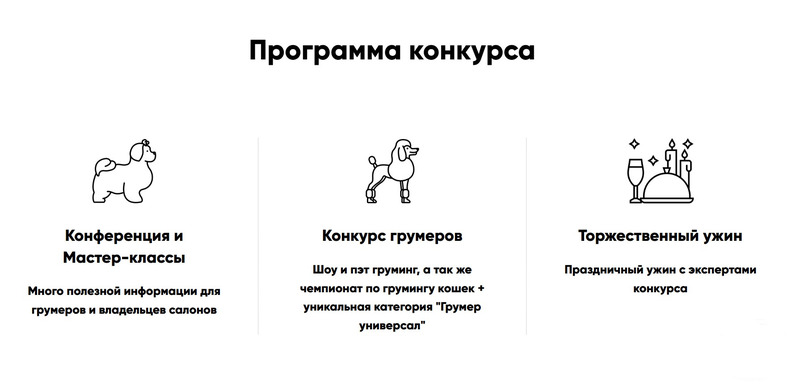 В разных городах регулярно проходят тематические мероприятия для грумеров. Например, международный конкурс грумеров GROOM CUP 2025 в Екатеринбурге. Источник — официальный сайт конкурса