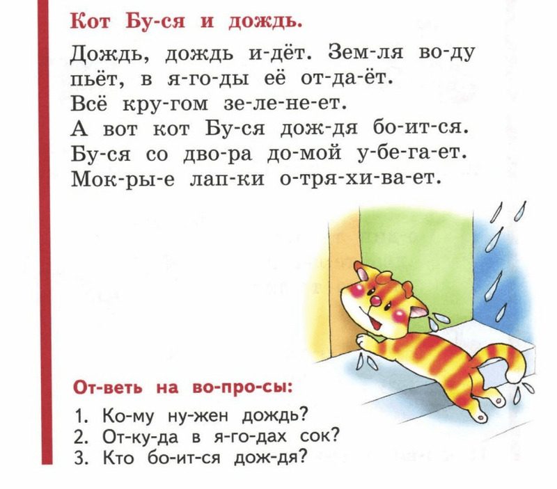 Чем дальше по программе продвигается ученик, тем сложнее становятся слоги и длиннее — тексты для чтения. Источник — Букварь Н. С. Жуковой