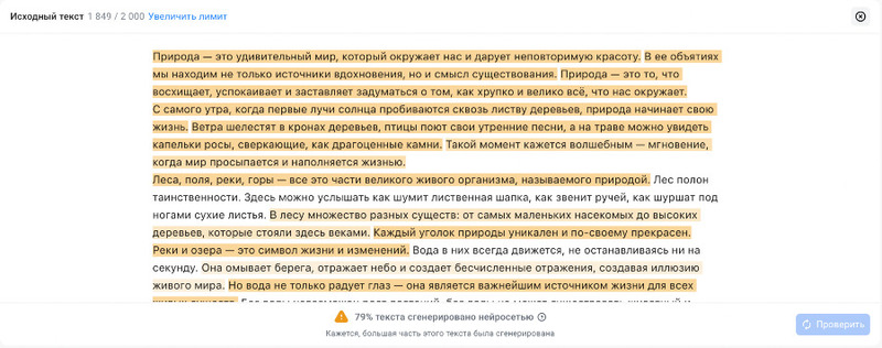 Ни один инструмент не дает стопроцентной гарантии, что работа написана искусственным интеллектом. Но есть набор характерных признаков, которые помогают заподозрить участие нейросети.
