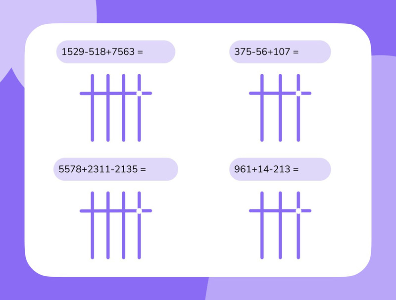 Ученик смотрит на пример и сразу понимает, как его решить через образ абакуса — быстро, точно и без стресса. Источник — материалы по курсу «Ментальная арифметика»