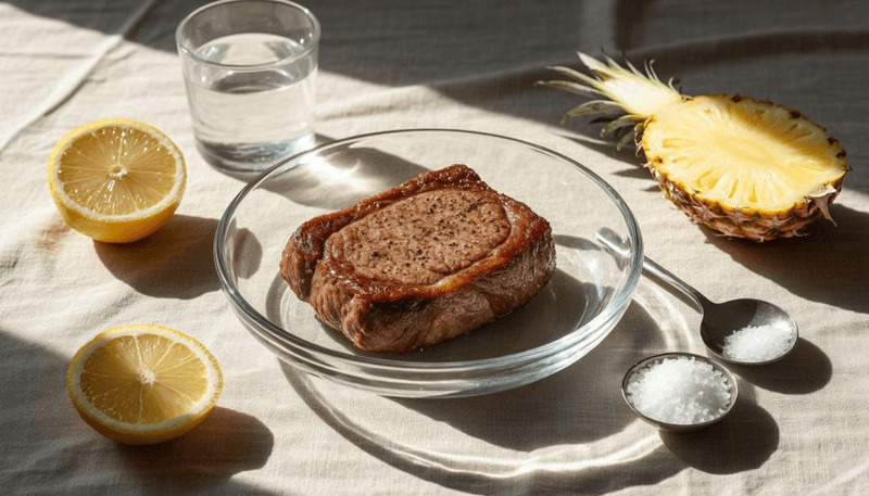 Если добавить к белку стакан воды, щепотку соли, кусок лимона или ананаса, организм сможет лучше усвоить макронутриент. Источник — нейросеть Алиса