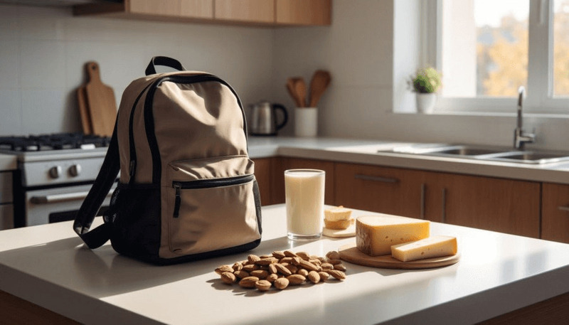 Высокое содержание белка есть в орехах, молоке, греческом йогурте, твердом сыре. Если нет времени на полноценный прием пищи, можно быстро перекусить дома или взять эти продукты с собой. Источник — нейросеть Алиса